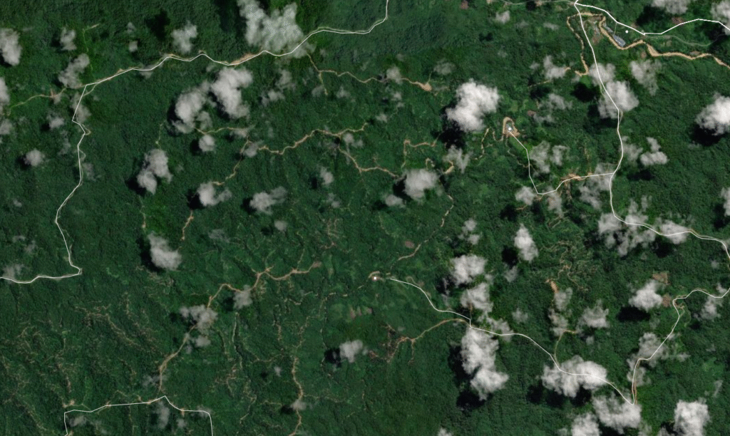 An example of a rural community that relies on off-road routes is shown below. These routes are informal paths used by local communities to walk or drive in the absence of paved roads. In some cases, they follow former logging roads and are therefore very common near large plantations; in others, they are informal pathways that have emerged through repeated use over time. While we are currently unable to map these off-road routes in detail due to data limitations, they are an important feature to recognise, particularly in the hinterland areas of Sarawak.